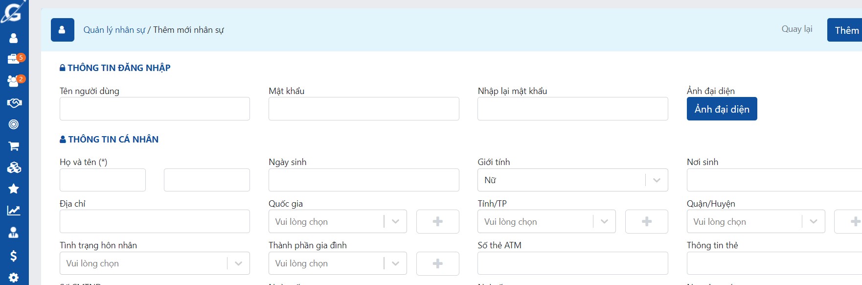Hiện tại trong module HRM thì vẫn cho tạo mới nhân sự và mục thông tin đăng nhập không có sao tức ko bắt buộc nhập. Nhưng nếu ko nhập thì lại không tạo được.